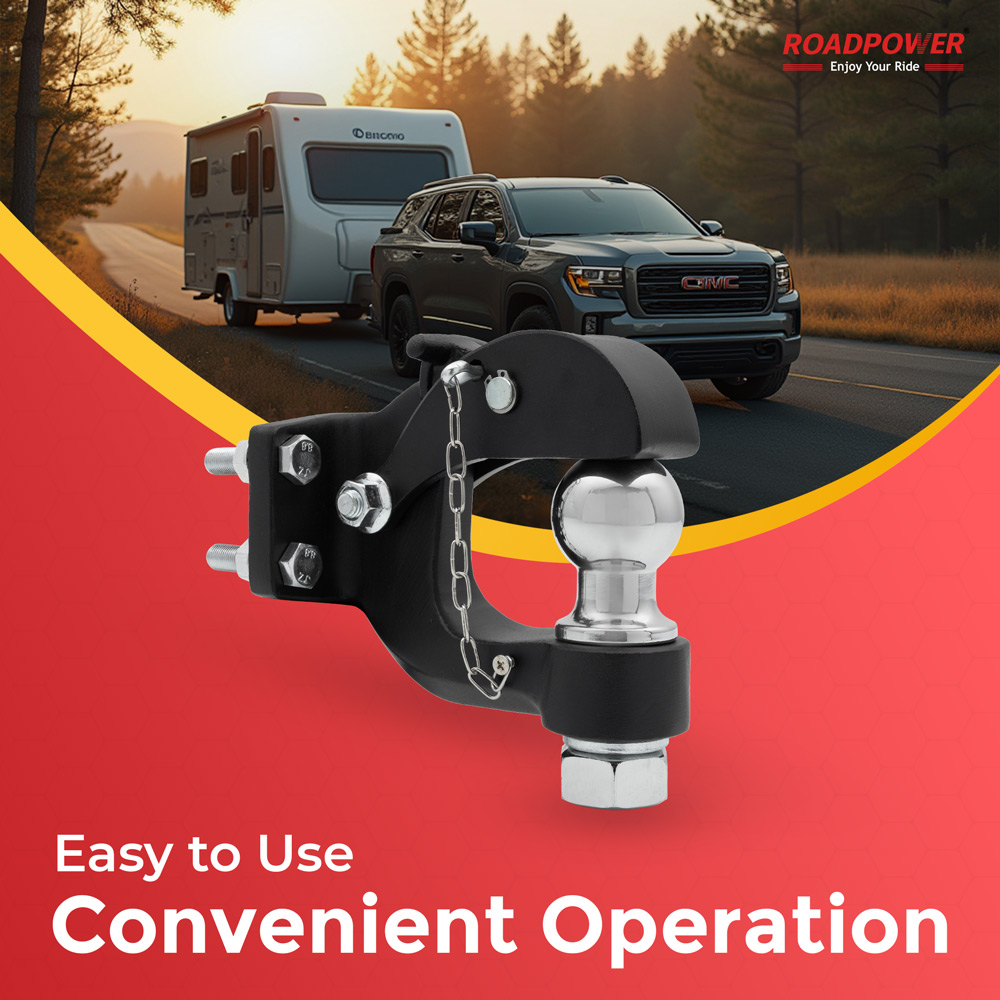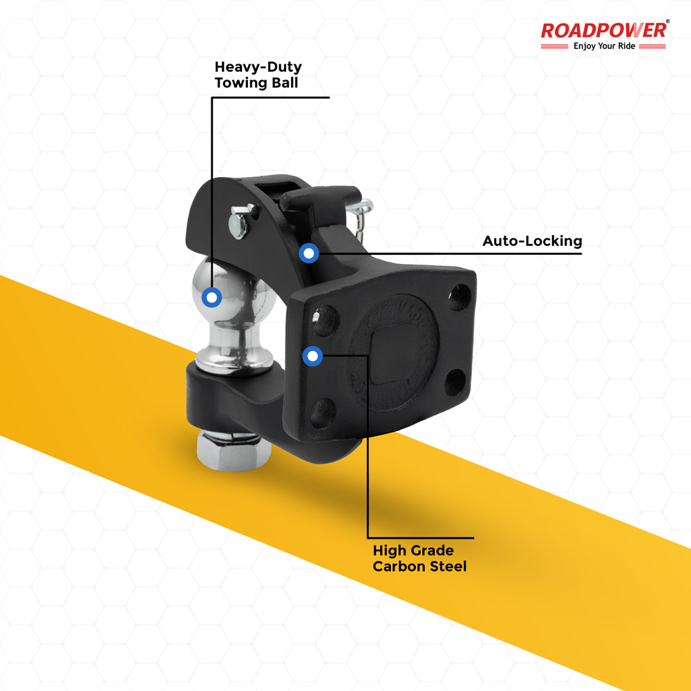 Upgrade your connection with the ROADPOWER Quick-Lock Hitch Ball. This heavy-duty unit features high-grade carbon steel construction and an innovative auto-locking mechanism for effortless, secure mounting. The rugged design ensures superior strength for towing, while the attached towing ball provides immediate coupling capability. Enjoy fast, reliable operation and superior safety when connecting to your trailer or coupling device.