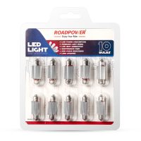 The LED Dome Festoon White Light Bulbs upgrade your car’s interior lighting with superior brightness, energy efficiency, and long-lasting performance. These bulbs feature 24 SMD LED chips, which deliver pure, bright white light to illuminate your vehicle’s cabin far better than traditional halogen bulbs.