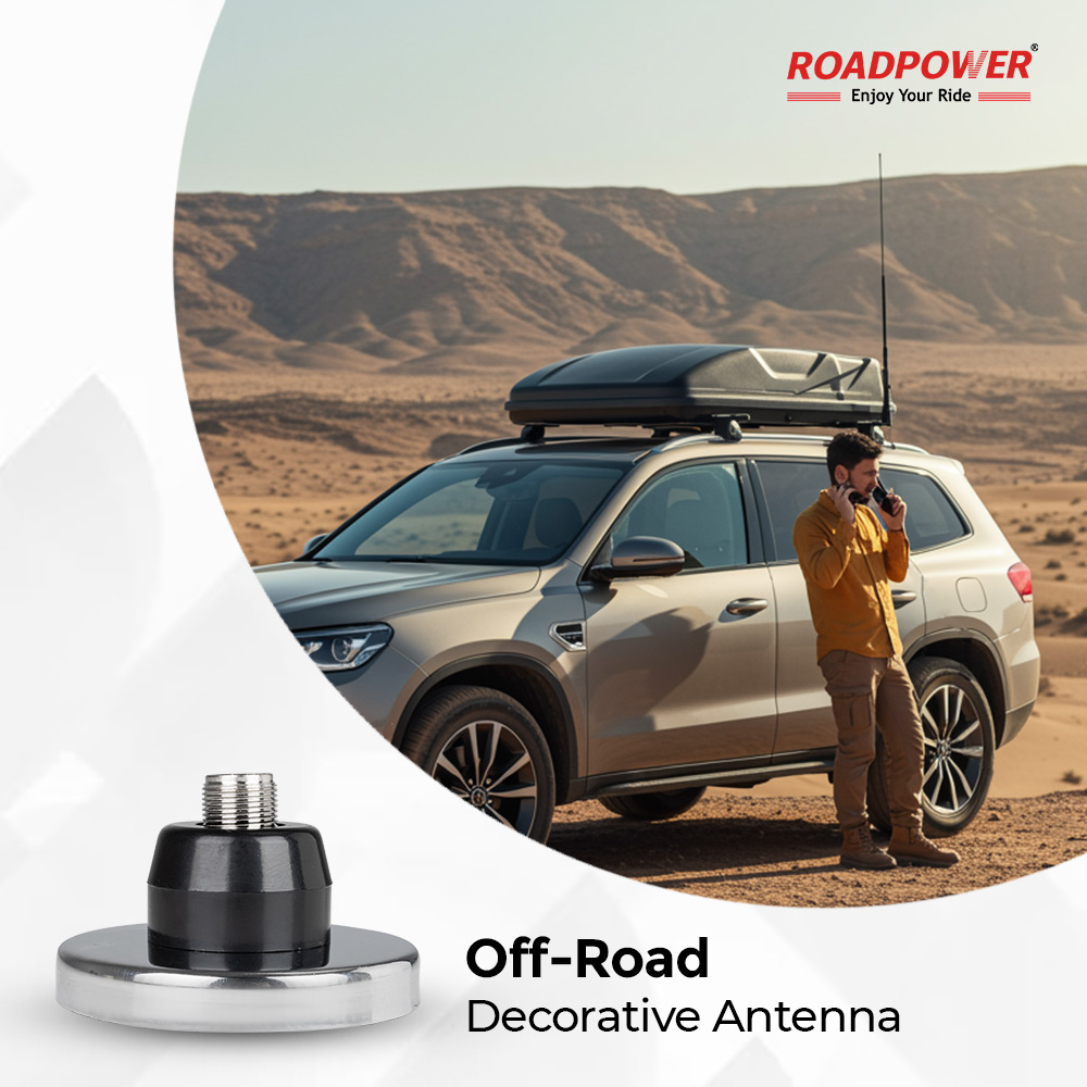 The ROADPOWER Off-Road Decorative Antenna is designed for adventure enthusiasts who demand both style and performance. Built with a durable, strong magnetic base, it ensures stability even on rough terrains. Its sleek and compact design enhances your vehicle’s appearance while maintaining a firm hold during off-road journeys. Perfect for SUVs and 4x4s, this antenna combines rugged reliability with modern aesthetics, helping you “Enjoy Your Ride” wherever the road takes you.