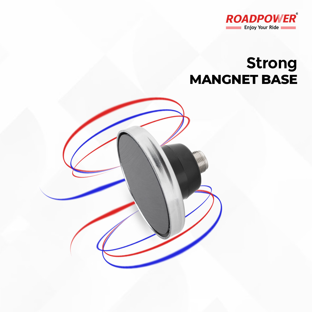 The ROADPOWER Strong Magnet Base offers exceptional holding power and durability for secure mounting. Its sleek metallic design with a chrome finish ensures a firm grip on any metal surface, making it ideal for automotive and industrial use. Built for performance and reliability, it provides stable attachment even in challenging conditions. With its robust construction and superior magnetic strength, the ROADPOWER Magnet Base helps you stay confident and “Enjoy Your Ride.