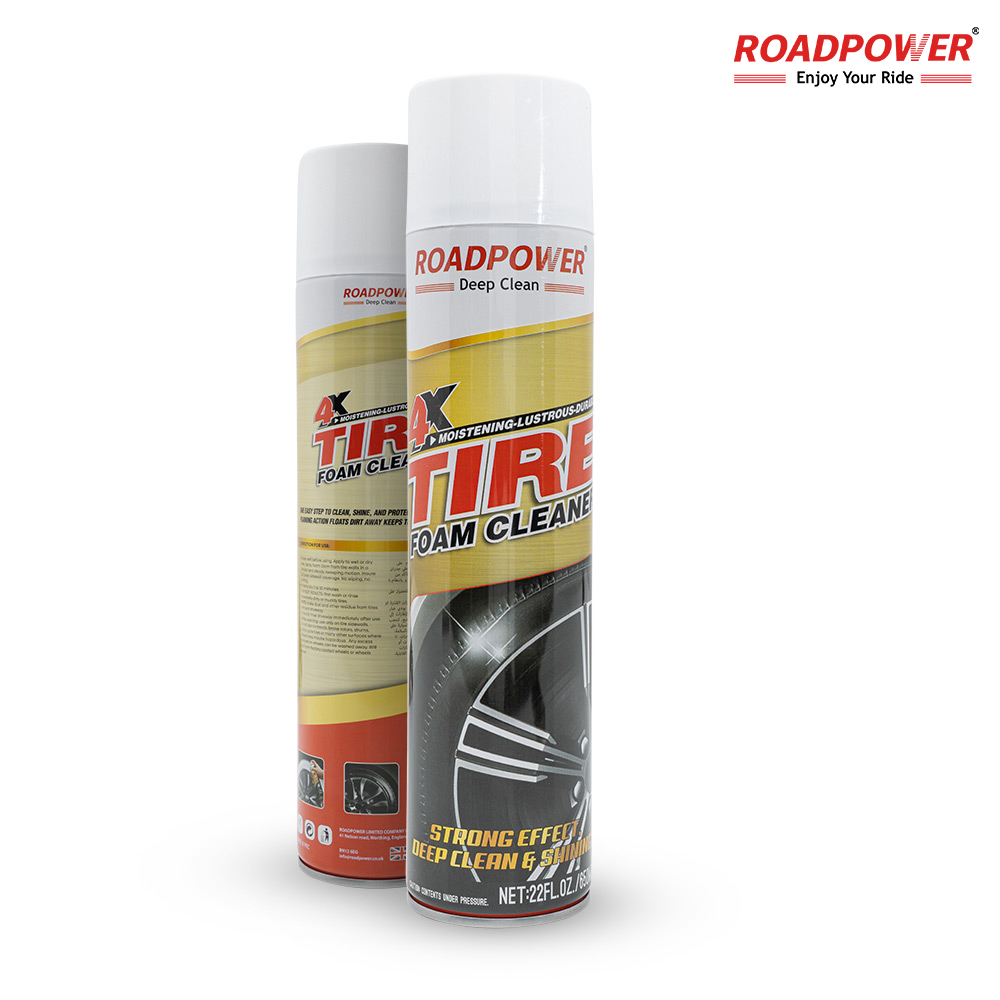 ROADPOWER Tire Foam Cleaner delivers a deep clean and rich shine in one easy step. The thick clinging foam lifts dirt, mud, and brake dust from sidewalls, then conditions rubber to restore a dark, like-new look. Spray on, let the foam work, and wipe or rinse for a non-greasy finish that helps resist cracking and browning. The 22 fl oz 650 ml can is perfect for cars, SUVs, and bikes.