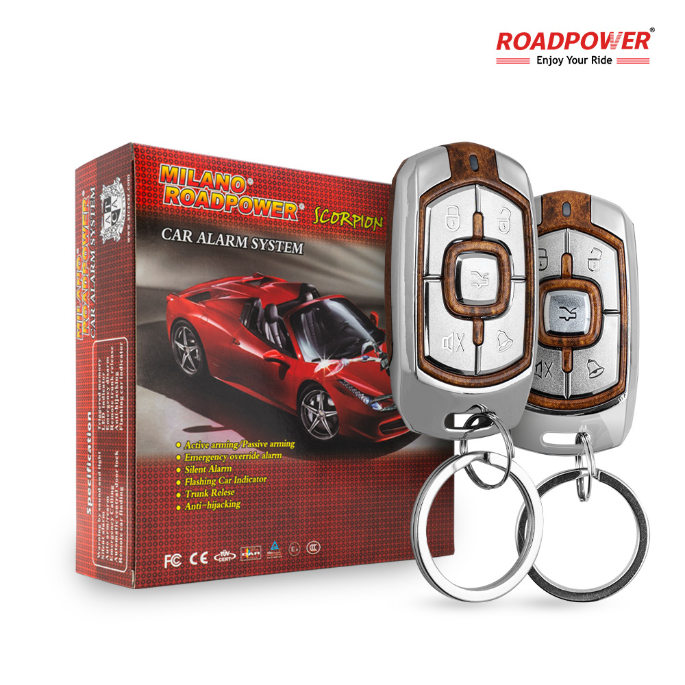 Upgrade your vehicle’s security with the stylish and powerful Milano Roadpower Scorpion Car Alarm System, now featuring premium wood-finish dual remote controls for an elegant and comfortable user experience. Engineered for modern vehicle protection, this system provides both active and passive arming, ensuring your car stays secure whether you lock it manually or let the system activate automatically.