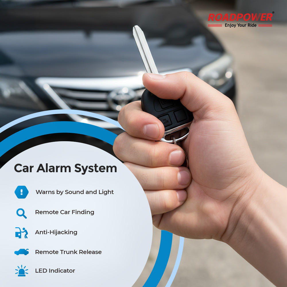 The ROADPOWER Car Alarm System provides reliable vehicle protection with two remote transmitters for convenient control. It includes a central control module, high-volume siren, wiring harness, relay, and connectors for easy installation. This advanced security system helps deter theft and unauthorized access, ensuring your car remains safe at all times. Designed for durability and efficiency, it offers quick response, dependable performance, and peace of mind for every driver.