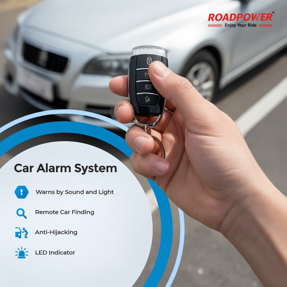 The ROADPOWER Car Alarm System provides comprehensive vehicle protection with features like sound and light alerts, remote car finding, and anti-hijacking. It also includes a remote and LED indicator for added convenience. Designed for safety and ease of use, this system ensures your car stays secure at all times. With its reliable performance and user-friendly remote control, ROADPOWER keeps you and your vehicle protected wherever you go.