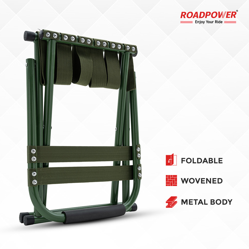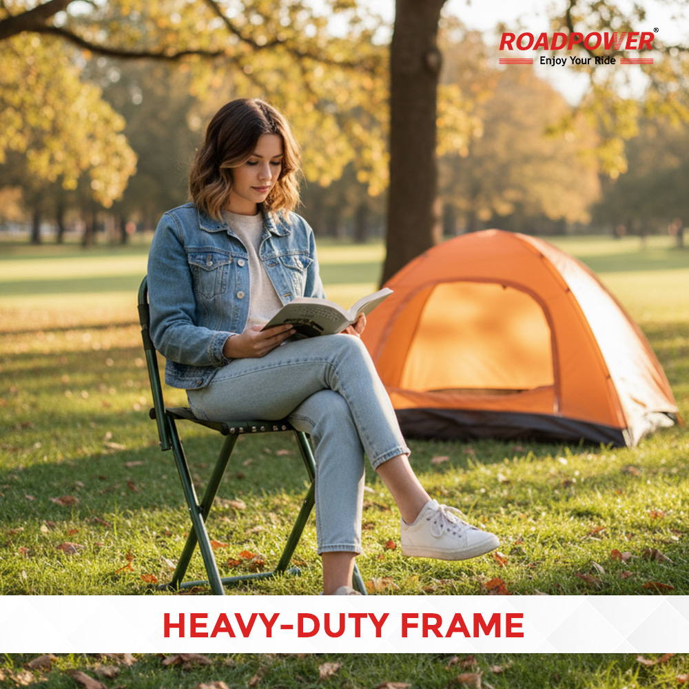 Experience outdoor comfort anywhere with the ROADPOWER Folding Camping Chair, built for durability, portability, and convenience. Designed with a strong steel frame and heavy-duty webbing seat, this compact chair is ideal for all your outdoor adventures from camping and fishing to hiking and picnics.