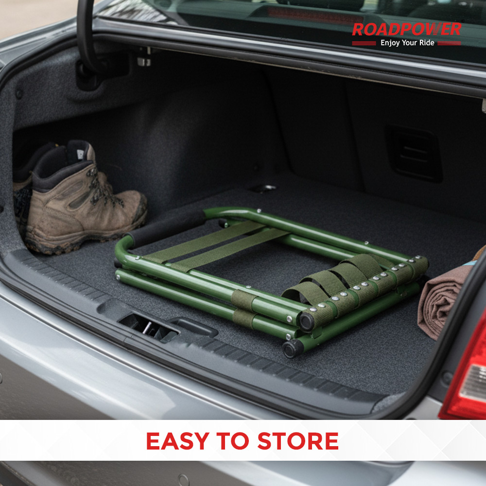Experience outdoor comfort anywhere with the ROADPOWER Folding Camping Chair, built for durability, portability, and convenience. Designed with a strong steel frame and heavy-duty webbing seat, this compact chair is ideal for all your outdoor adventures from camping and fishing to hiking and picnics.