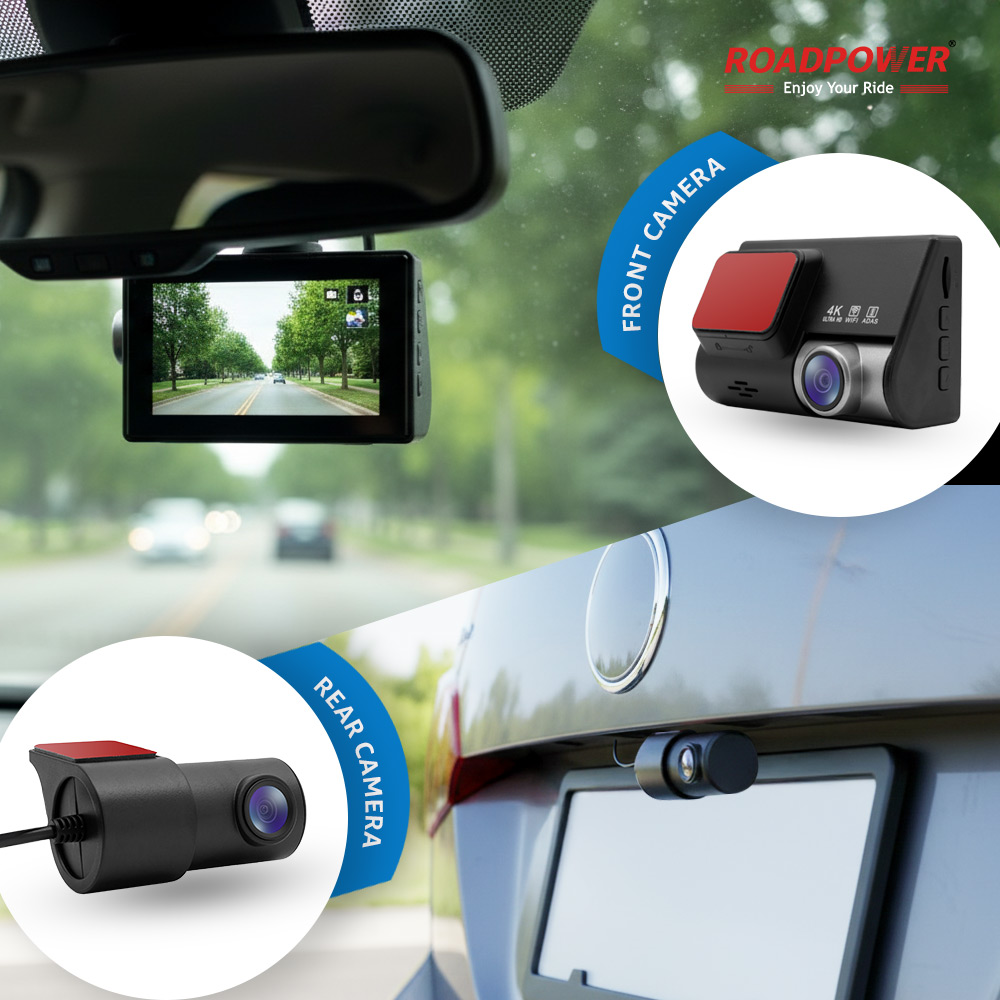 Capture every moment on the road with the ROADPOWER DASH-840 4K Dual Dash Cam, your reliable driving companion for safety and peace of mind. Designed for clarity, durability, and ease of use, this dual-camera system records both the front and rear views of your vehicle, ensuring complete coverage in every drive. The 4K Ultra HD front camera captures stunning, crystal-clear footage of your journey, while the waterproof rear camera provides dependable recording even in harsh weather.