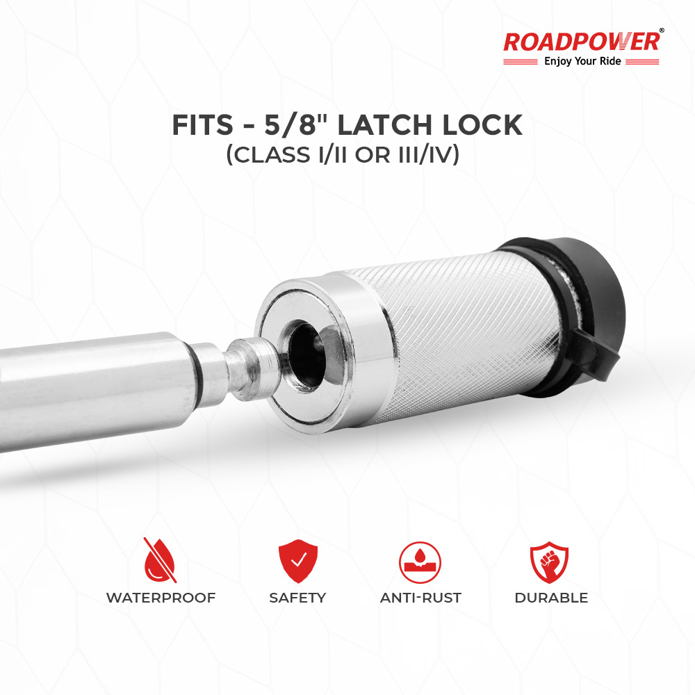 Secure your trailer with confidence using the ROADPOWER 5/8-Inch Anti-Theft Hitch Lock Pin (RP-HT-LOCK) a heavy-duty locking solution built to protect your towing gear. Designed for Class III, IV, and V receivers, this lock pin offers robust security to prevent unauthorized trailer removal and theft.
