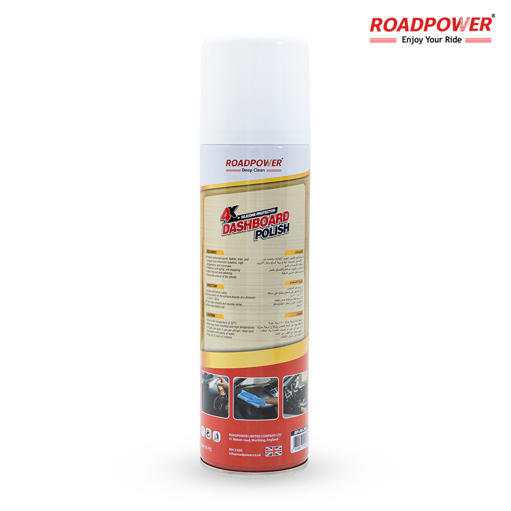 ROADPOWER 4X Silicone Dashboard Polish is a powerful and effective solution for cleaning, protecting, and enhancing your vehicle’s interior. This premium dashboard polish spray is designed to restore the shine and cleanliness of your car’s dashboard, leather surfaces, and tires, providing a like-new appearance with minimal effort.
