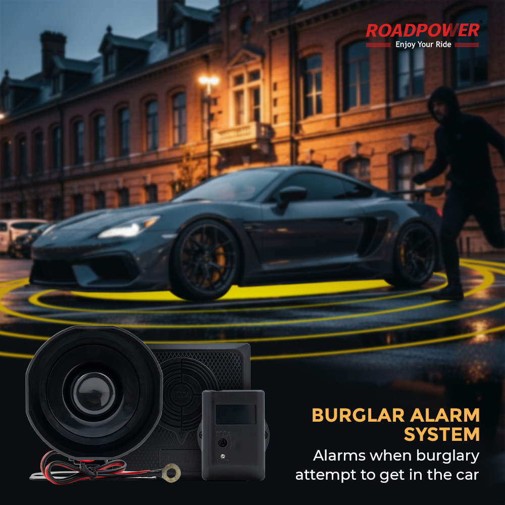 The ROADPOWER Milano Auto Security System offers reliable protection for your vehicle with a complete car alarm kit. It includes a main control unit, loud siren, advanced wiring harness, relay, and two wireless remote keys for convenient operation. Designed for durability and performance, this system provides enhanced anti-theft security and peace of mind, ensuring your car stays safe.