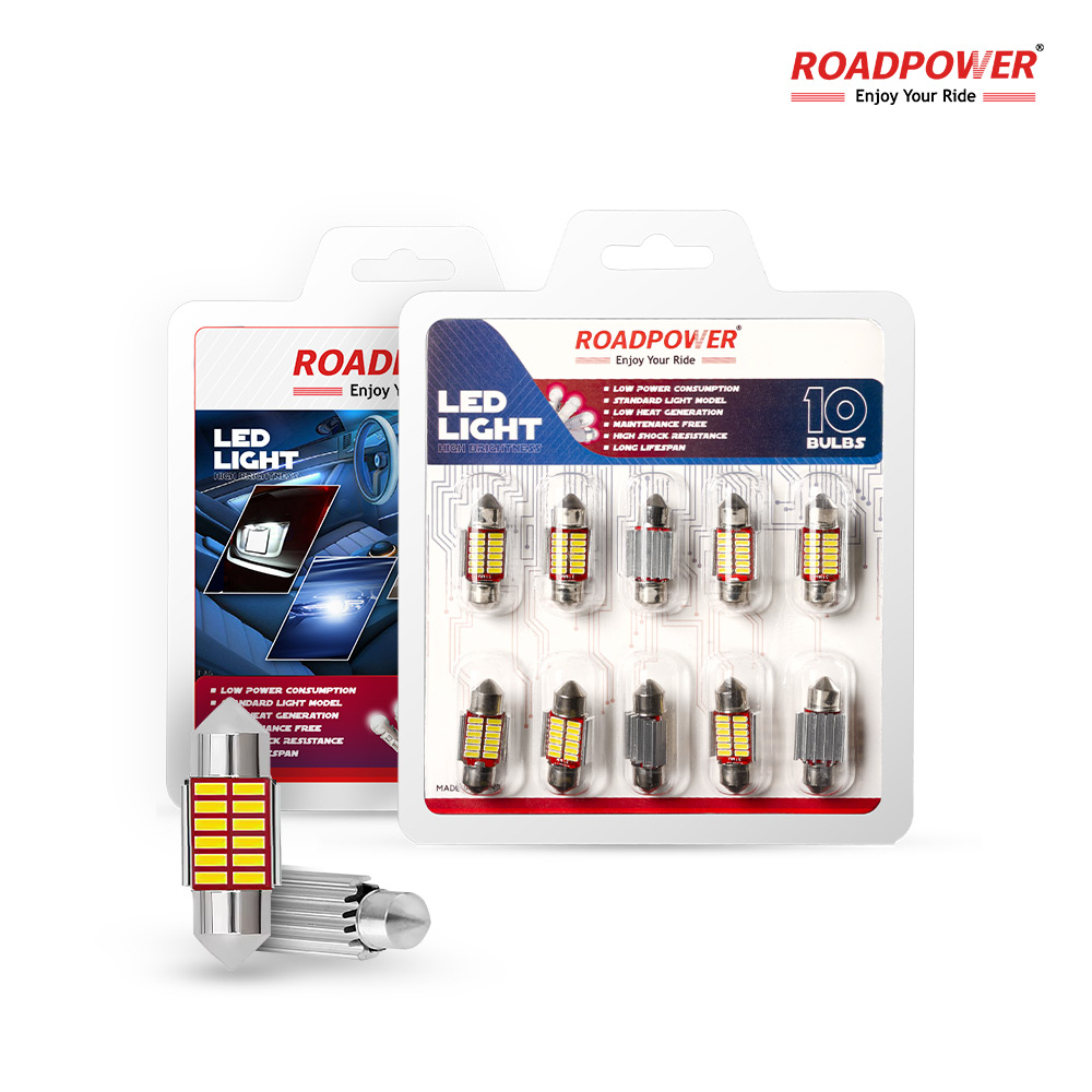 ROADPOWER festoon LED bulbs use an integrated aluminum heat sink for rapid cooldown and steady brightness. High conductivity, corrosion-resistant end caps improve electrical contact and durability, resisting moisture and vibration inside the cabin. Better thermal management protects the SMD chips from overheating, extending lifespan and reducing lumen drop. Enjoy bright light with low power consumption for dome, map, vanity, and trunk applications. Reliable, efficient, and built to last in driving.