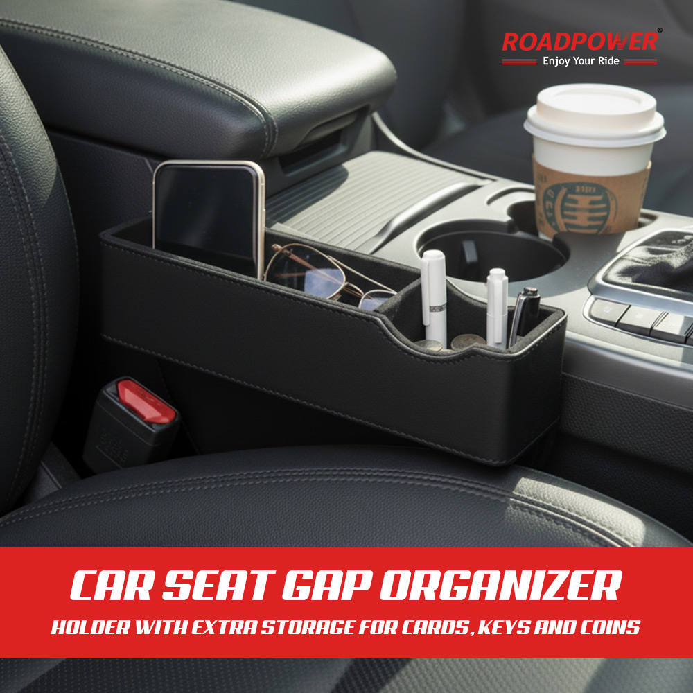 Keep your car neat, tidy, and distraction-free with the ROADPOWER Car Seat Organizer (Side 14). Designed to fit perfectly between your car seat and center console, this premium leather organizer prevents small items from falling into hard-to-reach gaps. It offers a smart, stylish way to store your phone, wallet, keys, coins, and other essentials. The durable material and sleek finish add a touch of sophistication to any vehicle interior while keeping everything within easy reach.