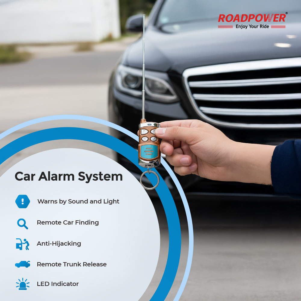 The ROADPOWER Car Alarm System provides reliable vehicle protection with two remote transmitters for convenient control. It includes a central control module, high-volume siren, wiring harness, relay, and connectors for easy installation. This advanced security system helps deter theft and unauthorized access, ensuring your car remains safe at all times. Designed for durability and efficiency, it offers quick response, dependable performance, and peace of mind for every driver.